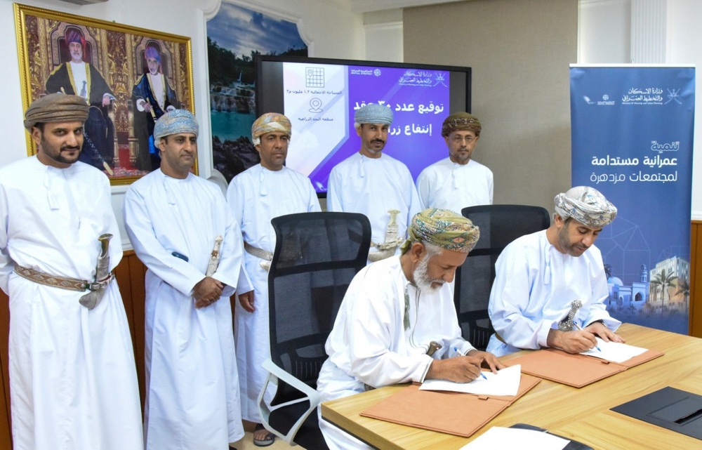 وقّعت وزارة الإسكان والتخطيط العمراني اليوم بمبنى المديرية العامة للإسكان والتخطيط العمراني بمحافظة ظفار على 30 عقدًا بنظام حق الانتفاع بأراضٍ في القطاع الزراعي بولايات محافظة ظفار التابعة لمكتب تطوير منطقة نجد الزراعية مع عددٍ من المستثمرين؛ بقيمة إجمالية تقدر بحوالي مليون وخمسين ألف ريال عُماني على مساحة إجمالية تقدر بمليون و 260 ألف متر مربع.