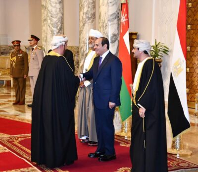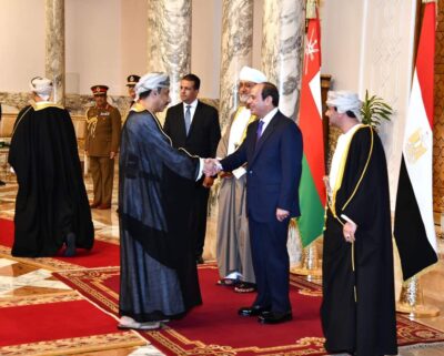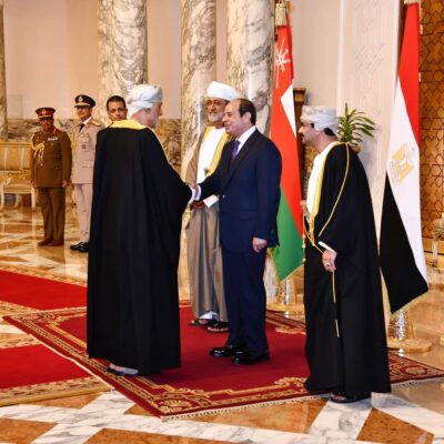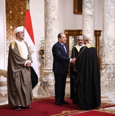 عقد حضرةُ صاحبِ الجلالةِ السُّلطان هيثم بن طارق المعظم /حفظهُ اللهُ ورعاهُ/ وأخوهُ فخامةُ الرئيس عبد الفتاح السيسي رئيسُ جمهوريّة مصر العربيّة مساء اليوم جلسة مباحثاتٍ رسميّة بقصر الاتحادية بالعاصمة المصرية القاهرة.