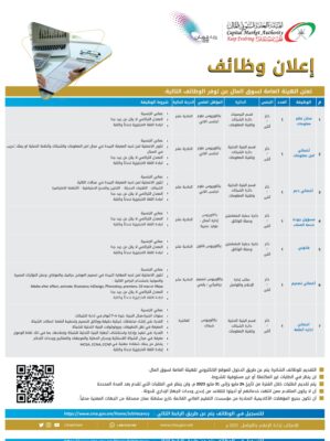 اعلنت الهيئة العامة لسوق المال عن مجموعة من الوظائف الشاغرة كما هو موضح ادناه :