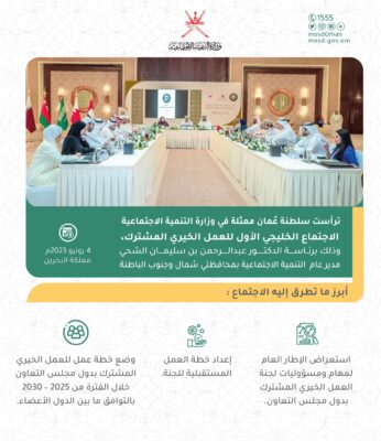 ترأست وزارة التنمية الاجتماعية الاجتماع الأول للعمل الخيري المشترك بدول مجلس التعاون لدول الخليج العربية ، وكانت محاوره كالآتي :-