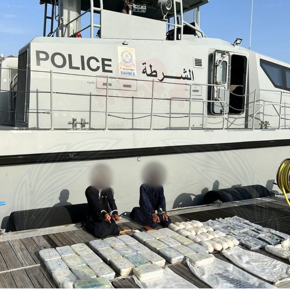 تمكنت قيادة شرطة خفر السواحل من ضبط قارب على متنه متسللين اثنين من جنسية آسيوية أثناء محاولتهما تهريب أكثر من (60) كيلوجرامًا من مخدر الكريستال و (20) كيلوجراما من مخدر الحشيش، وتُستكمل بحقهما الإجراءات القانونية.