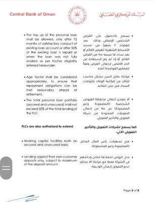 و تضمن التعميم تعديل بعض المتطلبات الرقابية للأنشطة الحالية، و توسيع نطاق الإقراض المسموح، وذلك ضمن 5 بنود وهي:-
