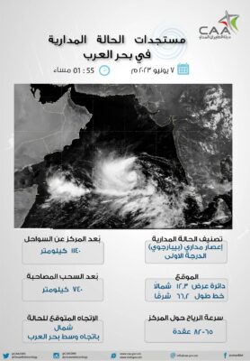 وهج الخليج - مسقط أعلنت هيئة الأرصاد الجوية عبر حسابها الرسمي على موقع التواصل الاجتماعي تويتر عن اخر تفاصيل الإعصار المداري (بيبارجوي) في بحر العرب.