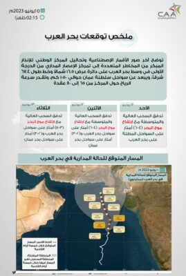 اعلنت هيئة الأرصاد الجوية عبر حسابها الرسمي على موقع التواصل الاجتماعي تويتر عن ملخص توقعات الإعصار المداري ببحر العرب.