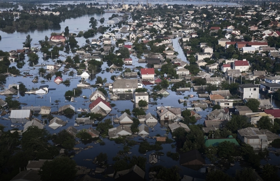وتسببت الفيضانات الناجمة عن تدمير السد في غرق حوالي 80 بلدة من البلدات الواقعة على ضفتي نهر (دنيبرو) بالإضافة إلى تعطل محطة (زابوريجيا) النووية لتوليد الكهرباء من مياه السد.