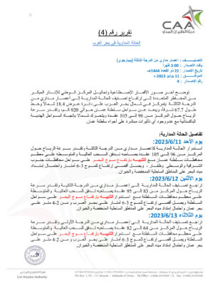 أصدرت هيئة الأرصاد الجوية عبر حسابها الرسمي على موقع التواصل الاجتماعي تويتر تقرير (4) عن الحالة المدارية في بحر العرب .