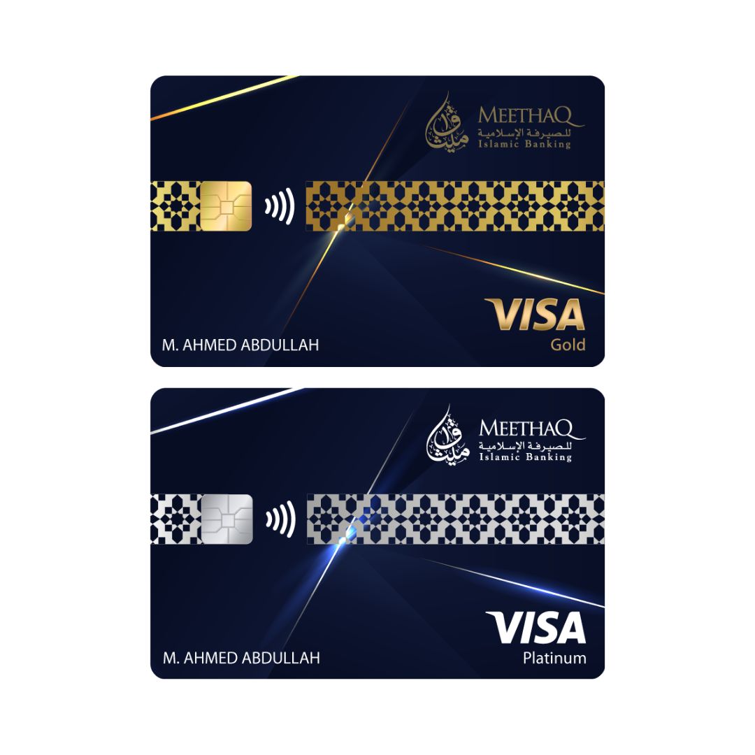 ترجمةً لرؤيته المرتكزة على الزبائن وحرصًا منه على تطوير منتجاته وخدماته لتتناسب مع احتياجات الزبائن وتطلعاتهم، يقدم ميثاق للصيرفة الإسلامية من بنك مسقط، بطاقات ائتمانية بمختلف المزايا للزبائن كل حسب احتياجه، حيث صُممت بطاقات ميثاق الائتمانية بما يتوافق مع مبادئ وأحكام الشريعة الإسلامية حيث يدفع حامل البطاقة رسوم أجرة ثابتة على خدمات ومنافع البطاقة بدون أي فوائد على مبلغ الحد الائتماني للبطاقة، كما توفر البطاقات امتيازات حصرية لمحبي السفر والتسوق وتقدم مرونة وقبول في جميع أنحاء العالم إضافة إلى الأمان في التعاملات المالية.