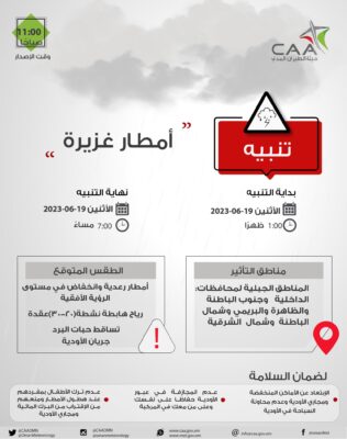 تنبيه حول استمرار هطول الأمطار الرعدية على عدد من الولاية الواقعة على جبال الحجر