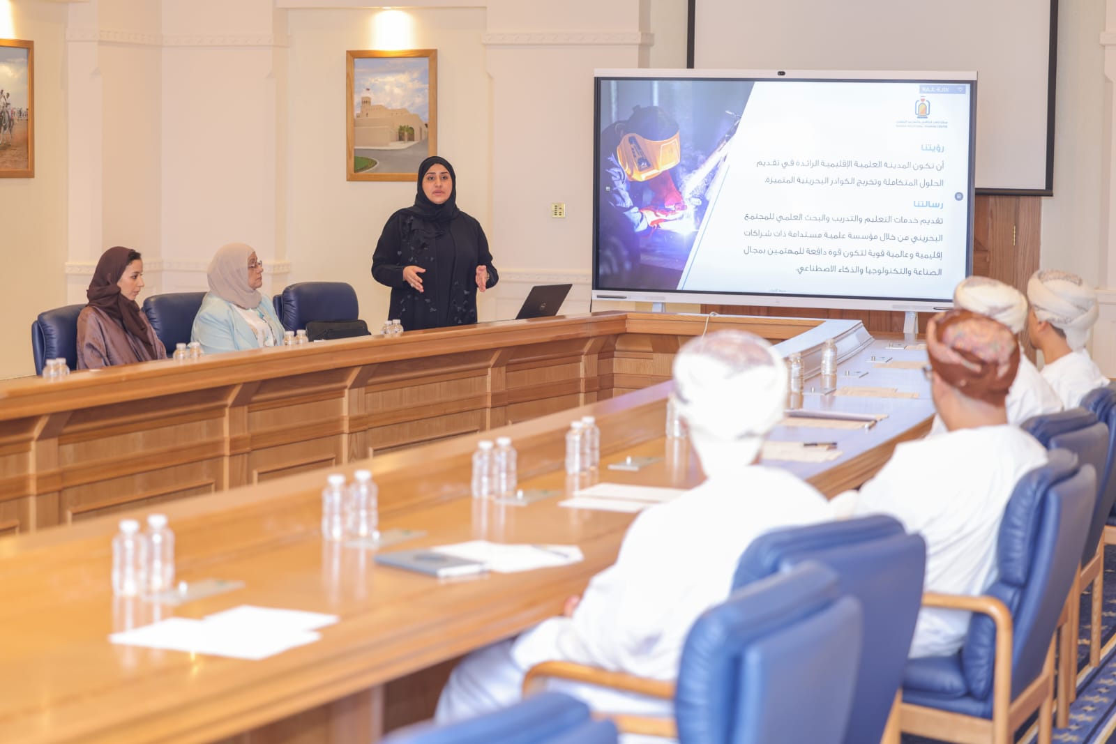 حضر اللقاء سعادة السيد سالم بن مسلم البوسعيدي، وكيل وزارة العمل لتنمية الموارد البشرية و سعادة الدكتور عبدالله امبوسعيدي، وكيل وزارة التربية والتعليم للتعليم والمختصين من زراة التعليم العالي والبحث العلمي والابتكارومن المديرية العامة للتدريب بوزارة العمل. حيث اشاد الحضور بإسهامات المركز المعرفية في تقديم  التعليم التقني والتدريب المهني بسمات جديدة تشمل التحول الرقمي والابتكار في التكنولوجيا الحديثة وعلوم المستقبل. مشيرين إلى أن تجربة مملكة البحرين الشقيقة في التعليم المهني والتقني تعتبر رائدة ونوعية منذ باكورة انطلاقتها في خمسينيات القرن الماضي.