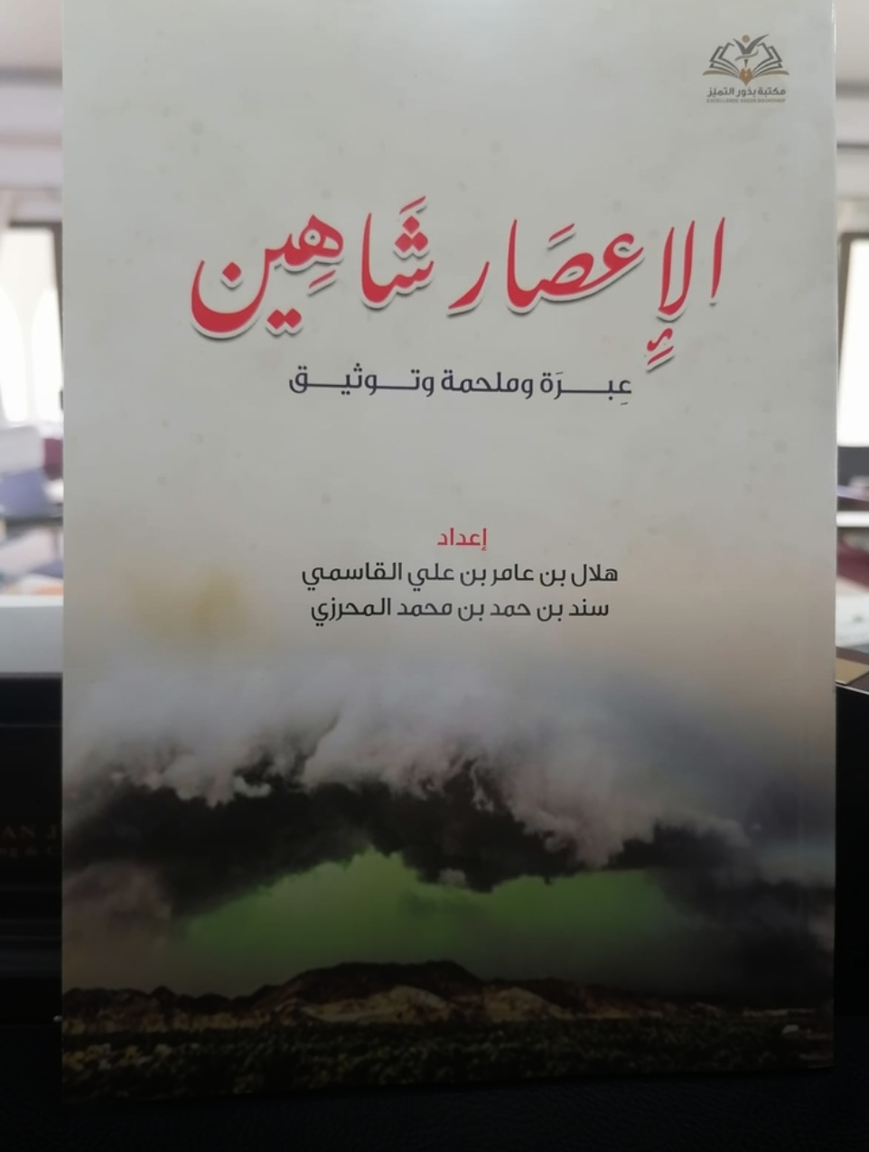صدر كتاب توثيقي عنوانه /الإعصار شاهين/ للكاتبَين العُمانيَّين هلال بن عامر القاسمي وسند بن حمد المحرزي، يوثق ملحمة المجتمع العُماني المتعاون في مواجهة إعصار شاهين الذي ضرب سلطنة عُمان في اكتوبر من عام 2021 م.