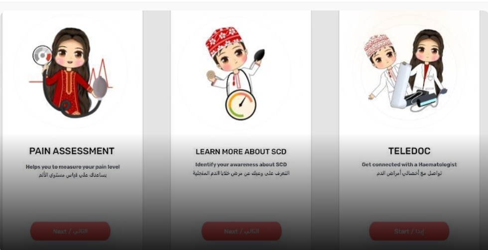وأضافت أن التطبيق يهدف إلى رفع مستوى المعرفة وتعزيز الكفاءة الذاتية لأولياء الأمور المصابين ويؤدي إلى تحسين جودة حياة المصابين وتحديد المؤشرات الحيوية لنوبة الألم عند المرضى، ويستهدف أولياء أمور المصابين والمصابين بمرض انيميا الخلايا المنجلية، ويتضمن 7 أيقونات ممثلة في مقياس الألم التفاعلي، وفيديوهات تعليمية، وألعاب تفاعلية، وطبيب لأجلك، وخدمة الإشعارات الأسبوعية، وسؤال وجواب، وخدمة الدردشة.
