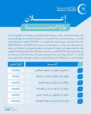 ” الصحة ” تعلن أسماء المرشحين لشغل وظيفة أخصائي تنسيق طبي