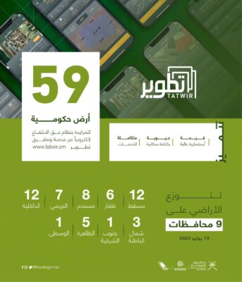 وهج الخليج - مسقط نشرت وزارة الاسكان والتخطيط العمراني عبر موقع التواصل الاجتماعي تويتر عن طرح 59 أرضا حكومية للمزايدة إلكترونيا كما هو موضح ادناه :