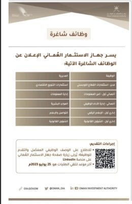 وظائف شاغرة لدى جهاز الاستثمار العماني