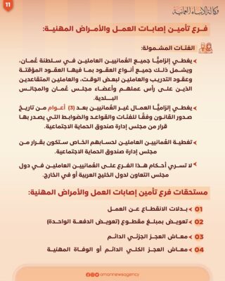 تعرف على الفئات المشمولة بتأمين إصابات العمل والأمراض المهنية