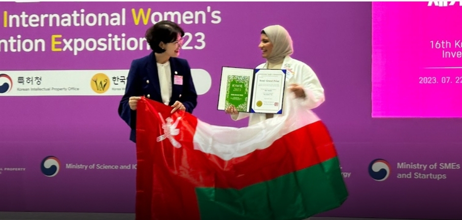 حصلت المبتكرة العُمانية رزان بنت حمد الكلبانية على الجائزة الكبرى في مسابقة ومعرض كوريا الدولي لابتكارات المرأة (KIWIE) عن ابتكارها “طلاء يمتص الأشعة السينية من مكون طبيعي”، من بين ٣٥٣ ابتكارًا من أكثر من ١٨ دولة بأنحاء العالم.