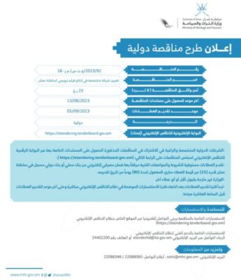 اعلنت وزارة التراث والسياحة عن طرح مناقصة لإنتاج فيلم ترويجي عن سلطنة عمان كما هو موضح ادناه :