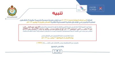 تعديل شرط العمر والتقدم للراغبين في الإلتحاق بـ”العسكرية التقنية”