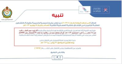 تمديد فترة التسجيل للإلتحاق بتدريبات “العسكرية التقنية”