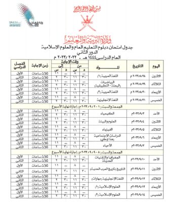 جدول امتحان دبلوم التعليم العام الدور الثاني