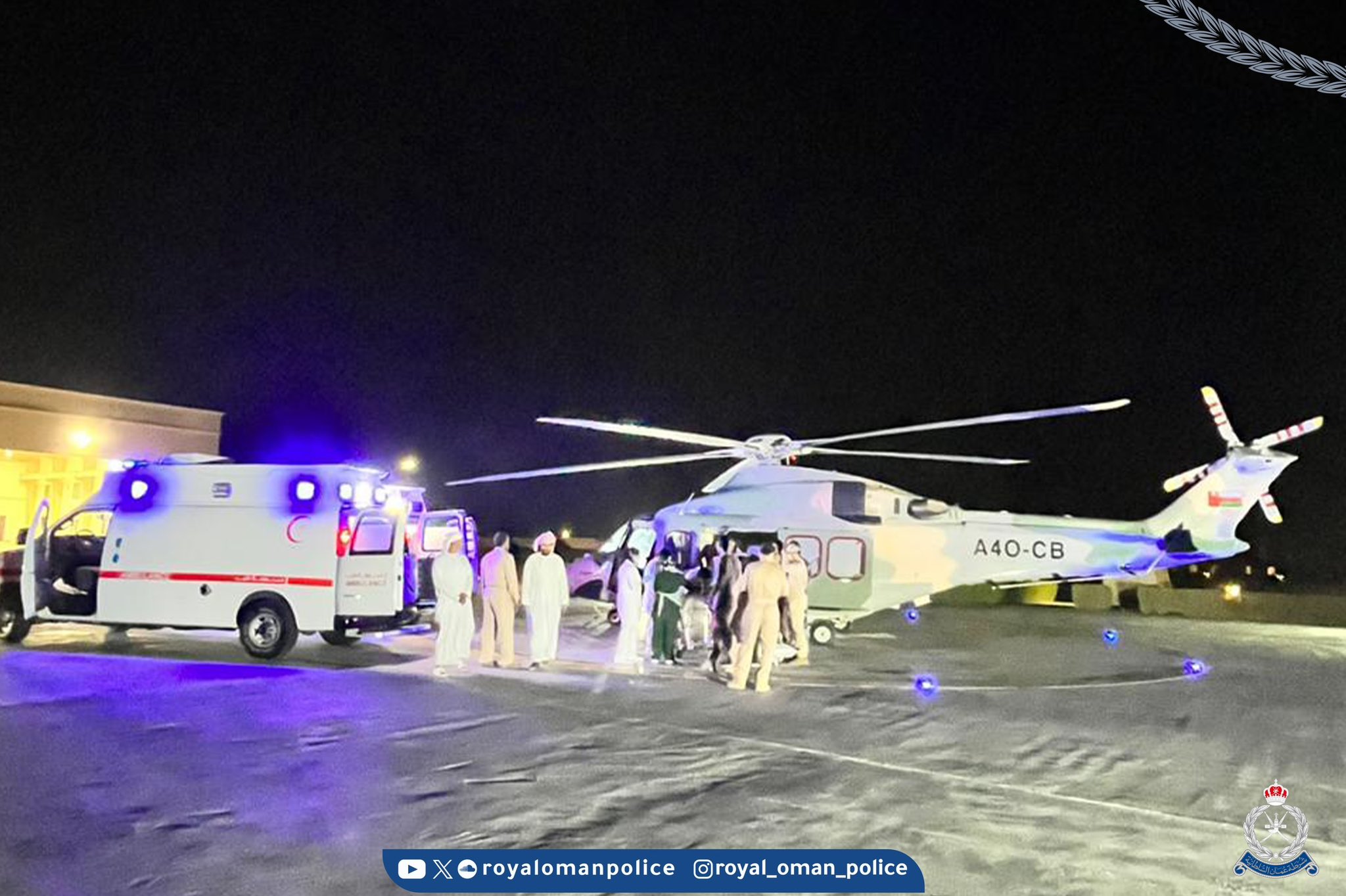 طيران الشرطة ينقل 3 مصابين من هيماء إلى نزوى
