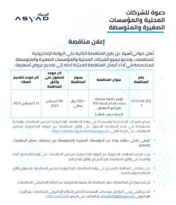 أسياد تطرح مناقصة .. إليك تفاصيلها