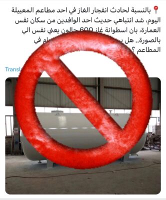 أوضحت هيئة الدفاع المدني والاسعاف عدم صحة ما نُشر حول حجم أسطوانة الغاز الخاصة بأحد المطاعم في المعبيلة التي انفجرت يوم أمس ، وتؤكد على عدم تداول المعلومات التي لم تصدر عن الجهات الرسمية.