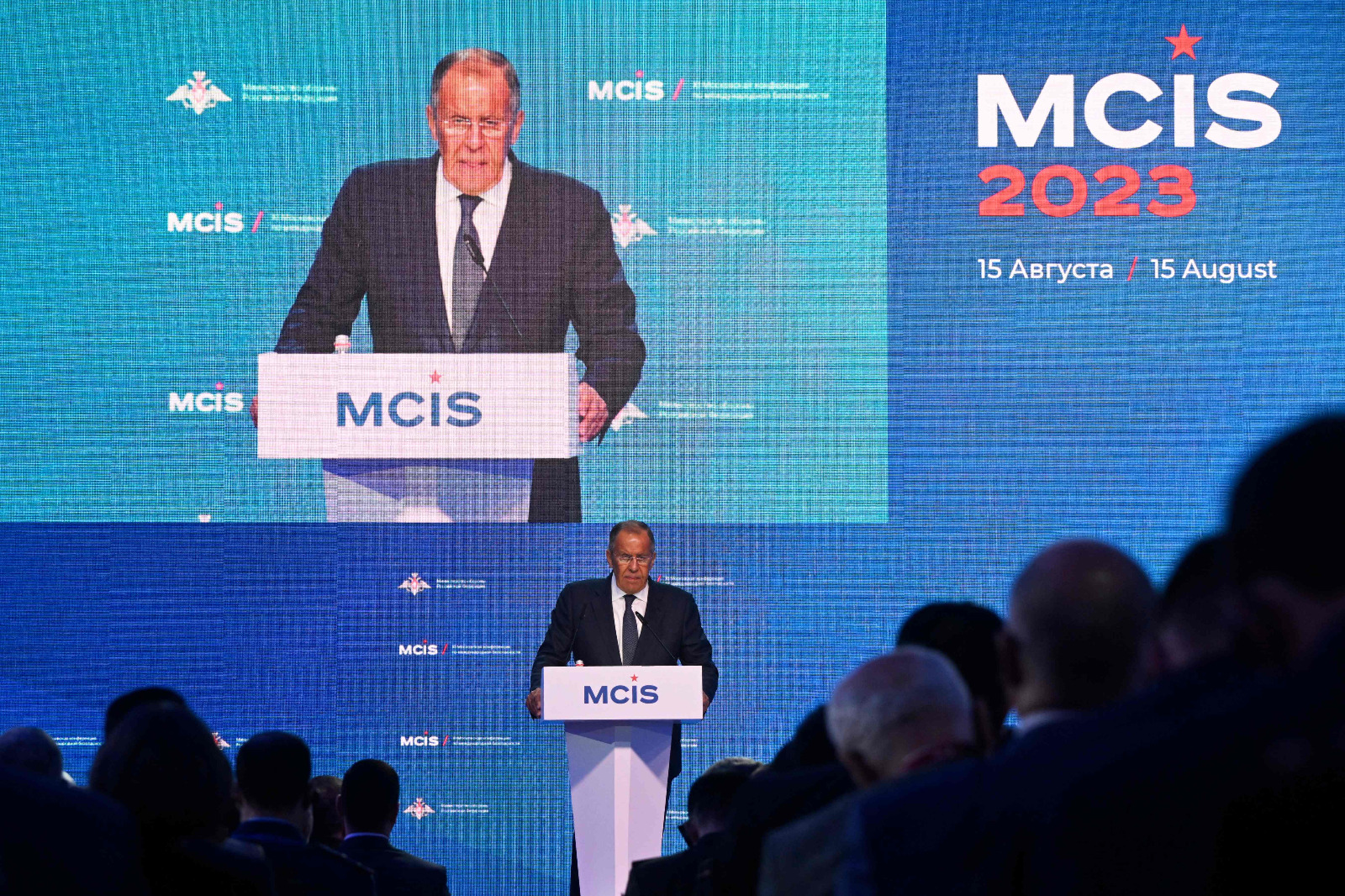 وقال لافروف متحدثا أمام المشاركين في مؤتمر موسكو الحادي عشر للأمن الدولي: “اليوم تضخ الولايات المتحدة وحلف شمال الأطلسي والاتحاد الأوروبي المزيد والمزيد من الأسلحة الحديثة إلى أوكرانيا، من أجل إنقاذ مشروعهم الجيوسياسي المتمثل في احتواء روسيا وتقسيم العالم الروسي”. وأضاف: “ذلك يؤجج الصراع ويثير الانتشار غير المنضبط للأسلحة حول العالم، إن طريقتهم المغامرة وغير المسؤولة تزيد بشكل كبير من خطر وقوع صدام عسكري مباشر بين القوى النووية” .
