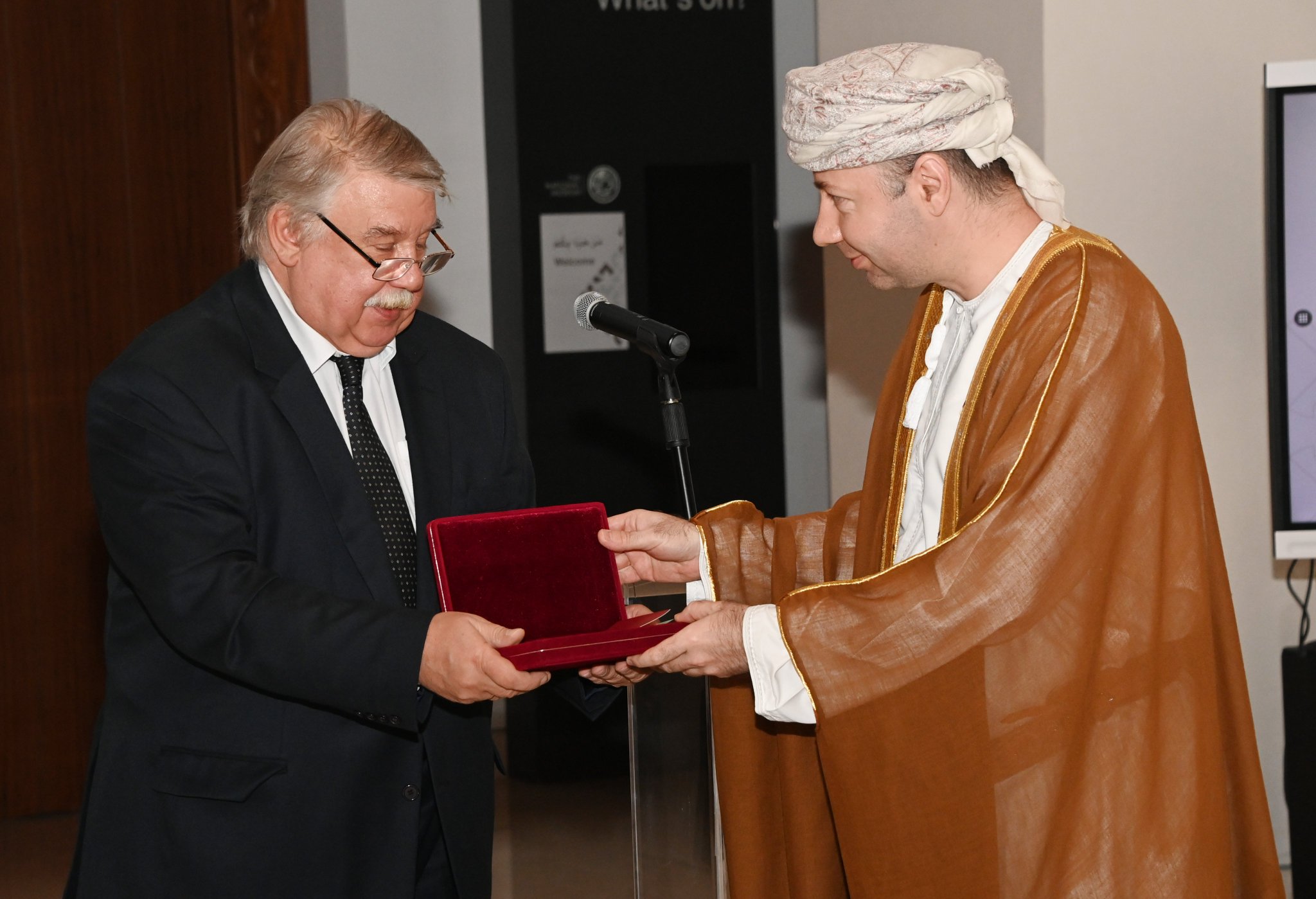 وقام سعادة السفير إيليا مورغونوف سفير روسيا الاتحادية المُعتمد لدى سلطنة عُمان اليوم في حفل أقيم بالمُتحف الوطني بتقليد سعادته الميدالية وهي من أرفع الجوائز التي تمنحها روسيا الاتحادية.