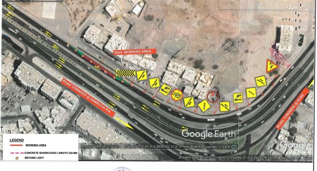 انتبه .. غلق جزئي للشارع القادم من دوار الحمرية باتجاه جسر وادي عدي