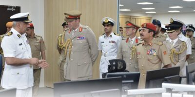 إلى ذلك قام رئيس الأركان العامة للجيش البريطاني والوفد العسكري المرافق له بزيارة مركز الأمن البحري، وكان في استقبالهم لدى وصولهم مقر المركز العميد الركن بحري عادل بن حمود البوسعيدي رئيس مركز الأمن البحري. وخلال الزيارة استمع الضيف الزائر والوفد المرافق له إلى إيجاز عن أدوار المركز وجهوده المختلفة المعنية بالمحافظة على أمن وسلامة البيئة والملاحة في المنطقة البحرية العمانية، كما اطلع الضيف على مرافق المركز وما جهز به من تقنيات وأنظمة حديثة تلبي واجباته الوطنية.