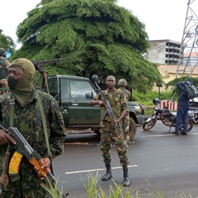 في 5 سبتمبر 2021، تمت الإطاحة بالرئيس ألفا كوندي في انقلاب عسكري. وفي 1 أكتوبر، نُصّب الكولونيل مامادي دومبويا رئيسا. وتعهّد العسكريون تسليم السلطة إلى مدنيين منتخبين بحلول نهاية عام 2024.