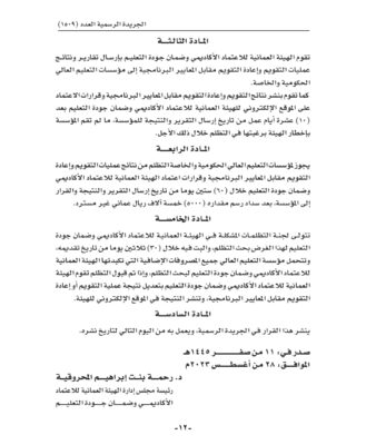 استنادا إلى المرسوم السلطاني رقم ۲۰۲۱/۹ في شأن الهيئة العمانية للاعتماد الأكاديمي وضمان جودة التعليم وإلى موافقة مجلس إدارة الهيئة العمانية للاعتماد الأكاديمي وضمان جودة التعليم وإلى موافقة وزارة المالية وبناء على ما تقتضيه المصلحة العامة.