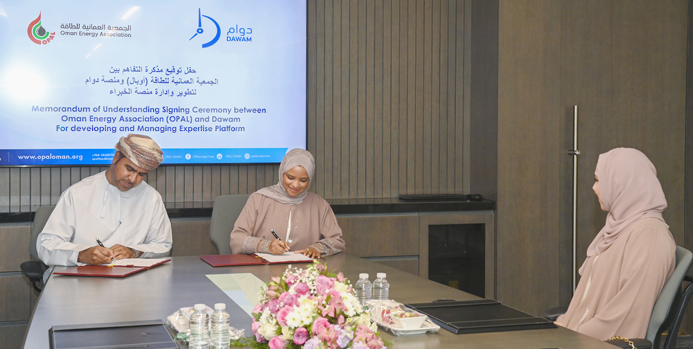 وقّع على الاتفاقية عبد الرحمن بن حميد اليحيائي الرئيس التنفيذي للجمعية العُمانية للطاقة “أوبال” وليلى بنت سعيد الحارثية الشريك المؤسس والرئيس التنفيذي لمنصة “دوام”.