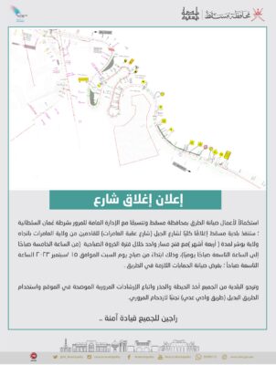 بلدية مسقط: غلق كلي لشارع عقبة العامرات.. لهذا السبب