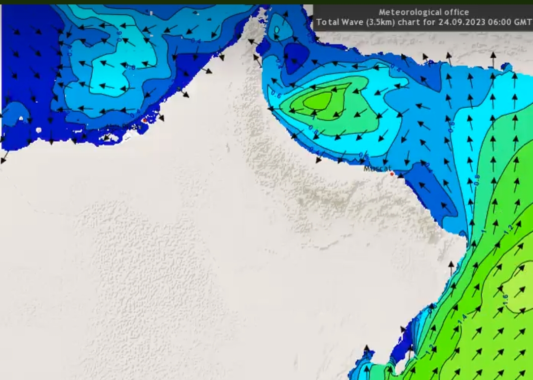 اصدرت هيئة الأرصاد الجوية عبر حسابها الرسمي على موقع التواصل الاجتماعي اكس تنبيهًا بارتفاع موج البحر إلى متوسط الموج (مترين) على سواحل محافظة مسندم وسواحل بحر العرب ويكون هادئ\متوسط الموج (1.25-1.5) متر على أجزاء من سواحل بحر عمان يوم غد الأحد.