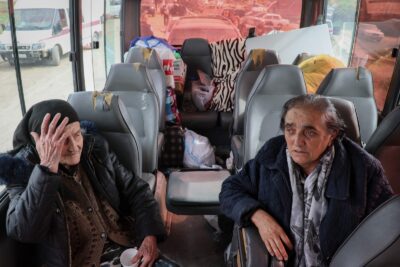والبعض يفرّ مشيًا. وقال رجل أثناء مروره أمام الجنود الأذربيجانيين “طردونا”. وقالت امرأة “تركت بيتي لأبقى على قيد الحياة، ليعلم العالم أننا أصبحنا كلابًا مشرّدة”. وبدأ مساء الأحد تدفّق اللاجئين إلى مدينة غوريس التي يبلغ عدد سكانها نحو عشرين ألف نسمة وتعدّ المحطّة الأولى للفارّين من ناغورني قره باغ.
