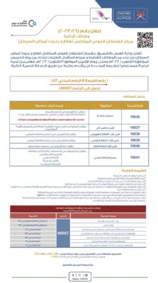 أعلنت ⁧‫وزارة العمل‬⁩ بالتنسيق مع مركز السُلطان قابوس المتكامل لعلاج وبحوث أمراض السرطان ⁦‪‬⁩ عن عدد من الوظائف الشاغرة وسيتم استقبال الطلبات ابتداءً من يوم الخميس الموافق 5 /أكتوبر/ 2023م وحتى يوم الاثنين الموافق 16 /أكتوبر/ 2023م للاطلاع والتسجيل من خلال المنشور الآتي :