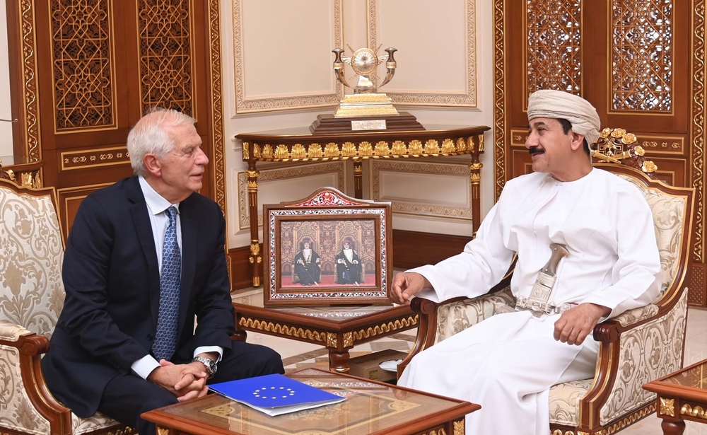 استقبل معالي الفريق أول سلطان بن محمد النعماني وزير المكتب السلطاني صباح اليوم معالي جوزيب بورييل الممثل الأعلى للاتحاد الأوروبي للسياسة الخارجية والأمنية ونائب رئيس المفوضية الأوروبية والوفد المرافق له.