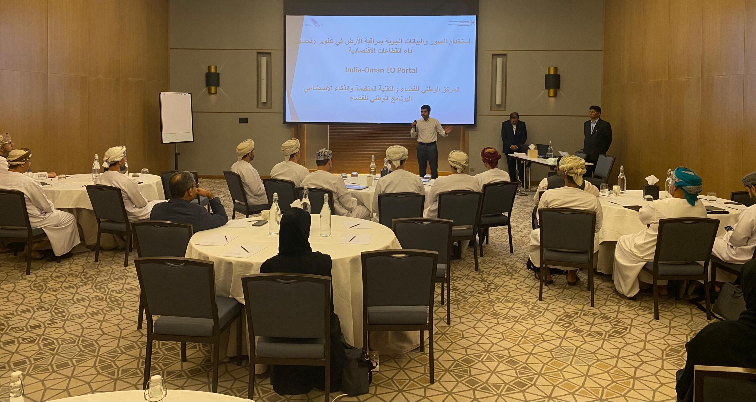 نظمت وزارة النقل والاتصالات وتقنية المعلومات ممثلة بالبرنامج الوطني الفضاء حلقة عمل تدريبية حول توظيف واستخدام البيانات الفضائية لمراقبة الأض في تنمية وتطوير القطاعات الاقتصادية باستخدام البوابة العمانية-الهندية لمراقبة الأرض التي تستمر لمدة يومين.