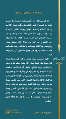 قال سماحة الشيخ احمد بن حمد الخليلي مفتي عام سلطنة عمان عبر حسابه الرسمي على موقع التواصل الاجتماعي اكس “نحيي المقاومة الفلسطينية الباسلة، ونُكْبِر فيها التزامها بآداب الإسلام في عدم التمثيل بجثث القتلى اتباعا لما أرشد إليه رسول الله صلى الله عليه وسلم، وندعو جميع الفصائل إلى التزام هذه الآداب”.