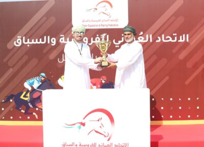 في أول مشاركة له بسباقات الخيل بالسلطنة تألق الحصان أ م جلفاني لمالكه غانم بن علي المعمري وفارسه عبدالرحمن بن طالب الفارسي ومدربه حسين بن علي السنيدي، وحل ثانياً الحصان المفحم أف بي لمالكه سعد بن سهيل المخيني وفارسه المعتصم بن سعيد البلوشي مدربه بدر بن محمد الحجري، وجاء بالمركز الثالث الحصان دجلنور لمالكه سلطان بن علي السنيدي وفارسه عاصم بن علي الفارسي ومدربه حسين بن علي السنيدي.