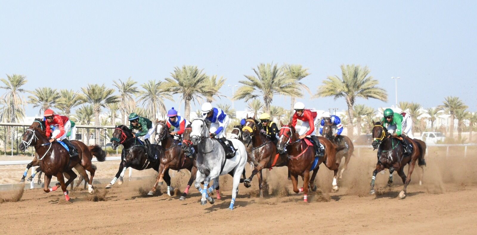 8 أشواط في انطلاق سباق الخيل بمضمار الرحبة ببركاء