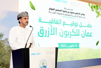 وقَّعت هيئة البيئة اليوم على عقد مشروع الكربون الأزرق “عُمان للكربون الأزرق” مع شركة MSA للمشاريع الخضراء لاستزراع 100 مليون شجرة قرم بسلطنة عُمان.