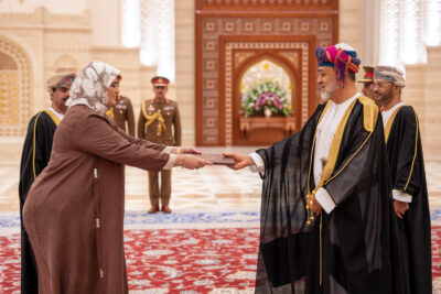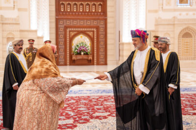 تقبل جلالةُ السُّلطان المعظم -حفظه اللهُ ورعاه- بقصر البركة العامر صباح اليوم أوراق اعتماد عددٍ من أصحاب السّعادة سفراء الدول الشقيقة والصديقة المُعتمدين لدى سلطنة عُمان، كلٍّ على حـدة.