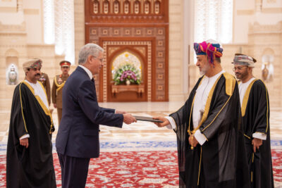 وسعادة السفير الدكتور محمد علي بوغازي سفيرًا فوق العادة مفوّضًا من قبل فخامة الرئيس عبد المجيد تبون رئيس الجمهورية الجزائرية الديمقراطية الشعبية معتمدًا لدى سلطنة عُمان.