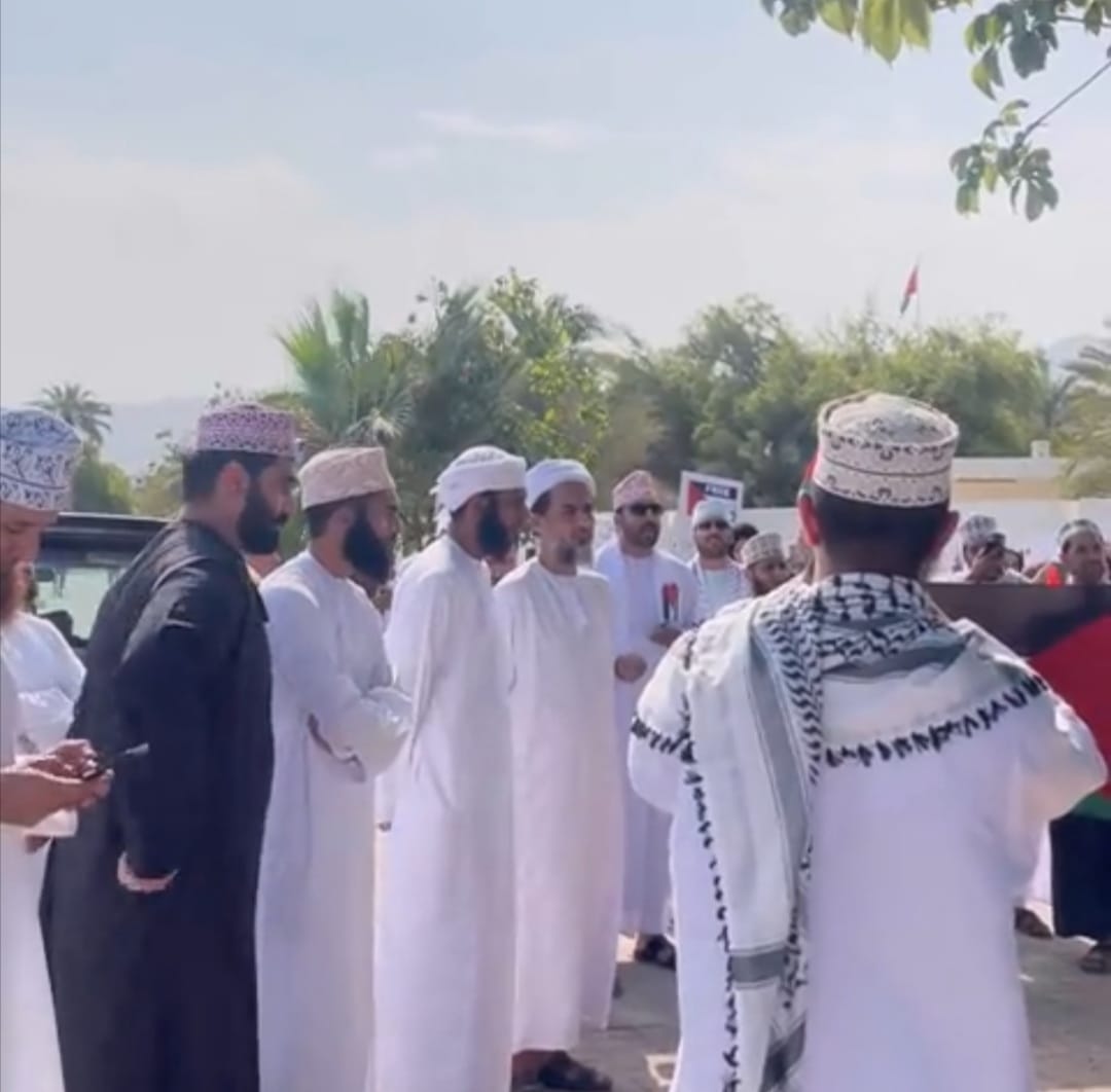 وفي وقت سابق تداول عدد من رواد مواقع التواصل الاجتماعي فيديو لوقفة سلمية تضامنا مع الشعب الفلسطيني وضد المجازر الإسرائيلية التي يرتكبها الاحتلال في قطاع غزة، وذلك بالقرب من السفارة الاميركية في مسقط.