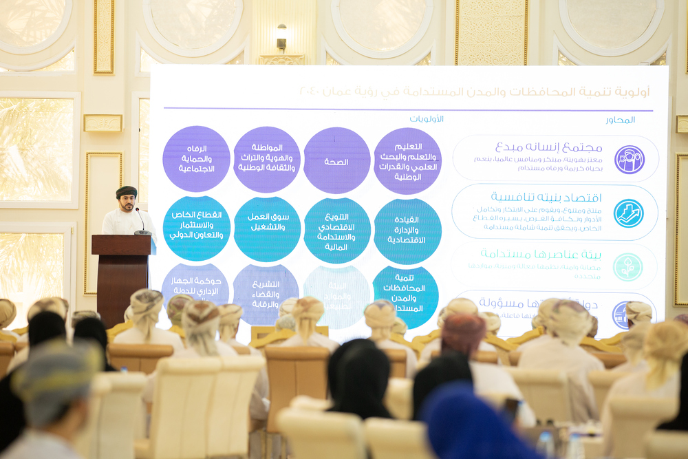وبيّن سعادته أن مهمة المحافظات أصبحت مهمة في سبيل تحقيق مرتكزات الرؤية من خلال التنمية المستدامة، وتهيئة البيئة الجاذبة للاستثمارات، وتنمية مواردها، والارتقاء بخدماتها وأنشطتها المحلية والبلدية، واستثمار الميزة النسبية لكل محافظة، وهذا ما جرى التركيز عليه في المرحلة السابقة في إعداد المشروعات التنموية المختلفة”.