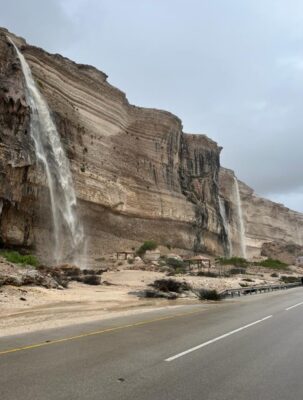كما يستمر جريان أودية / دحنوت/ و /ثنا /و/حضبرم/ و/ريكوت / في نيابة حاسك بولاية سدح والنيابات التابعة لها بسبب التاثيرات المصاحبة للحالة المدارية إعصار/تيج/ .