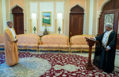أدى قسم اليمين أمام المقام السّامي لحضرةِ صاحبِ الجلالةِ السُّلطان هيثم بن طارق المعظم ـ حفظه اللهُ ورعاه ـ بقصر البركة العامر صباح اليوم، عددٌ من أصحاب السّعادة السّفراء، حيث أدى القسم كـلٌّ من: